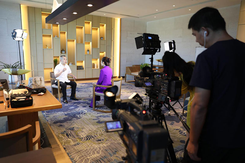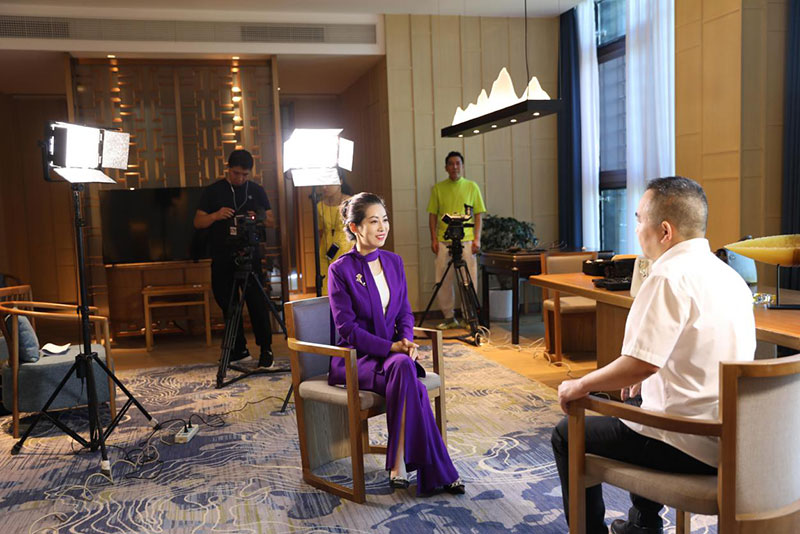 (浙江登云小智科技发展有限公司总裁陈吉东正在接受央视主持人赵紫凝的专访)
