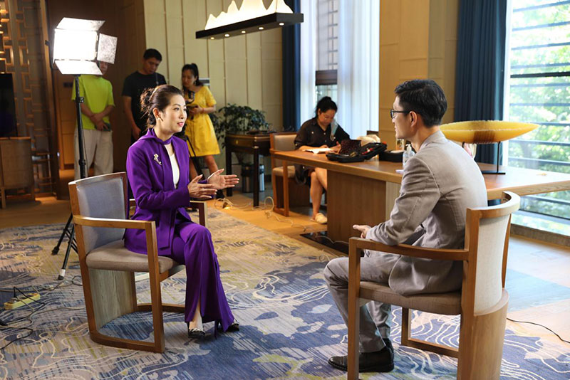 (华夏登云健康城创始人孙翊恺正在接受央视主持人赵紫凝的专访)