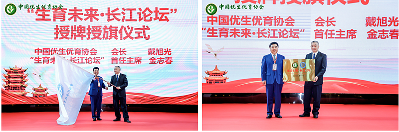 戴旭光会长为首届“生育未来•长江论坛”主席金志春教授授旗并颁发牌匾