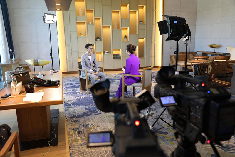 (华夏登云健康城创始人孙翊恺正在接受央视主持人赵紫凝的专访)